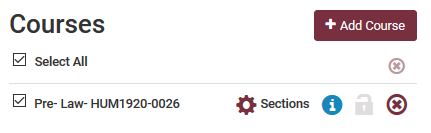 Click the Sections gear beside each course you selected to view the sections available.