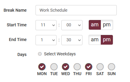 Click the +Add Break button to add a break into your schedule.